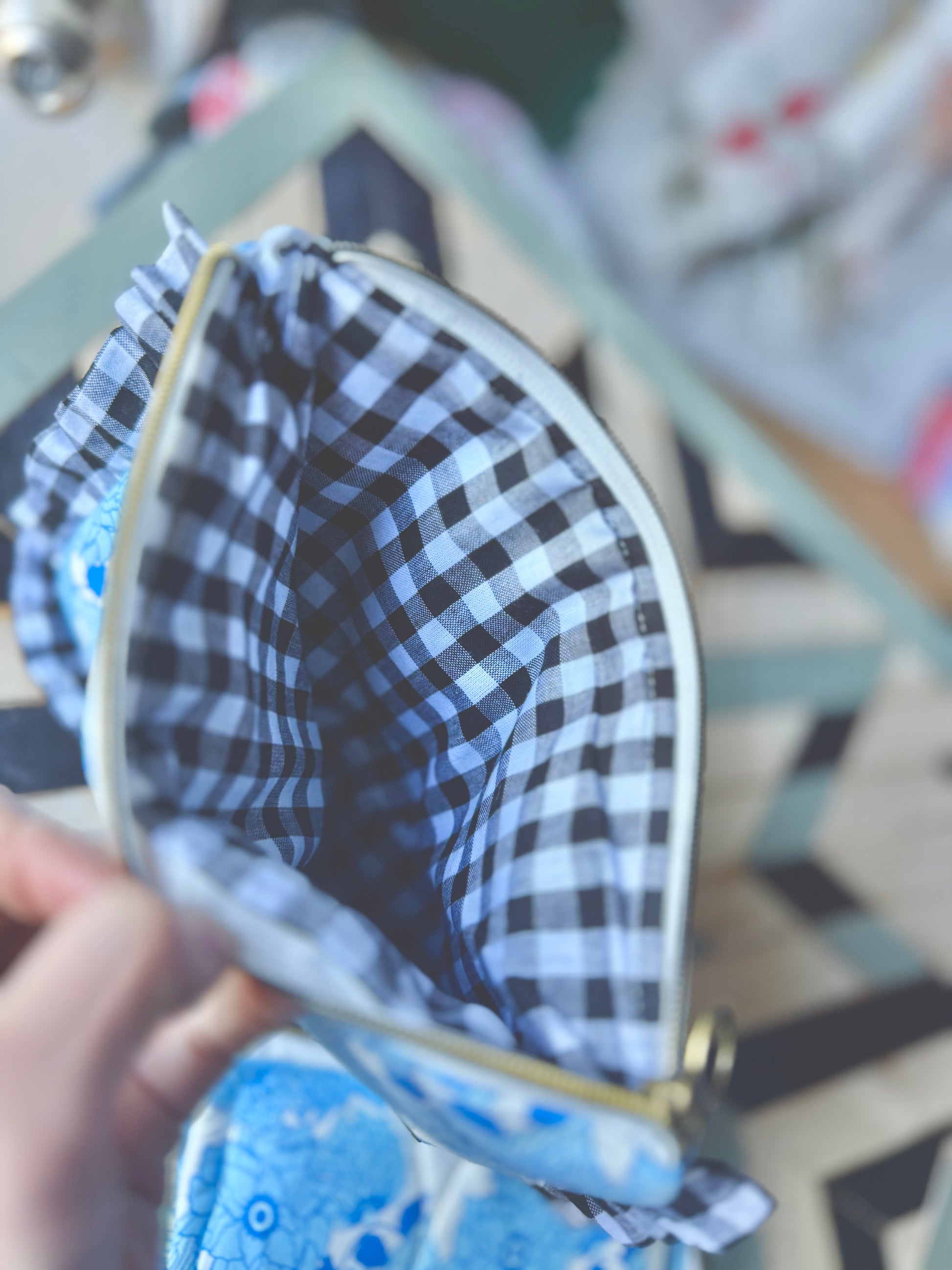 Made from a vintage 1960's coverlet. Set includes two zippered pouches, perfect for travel.